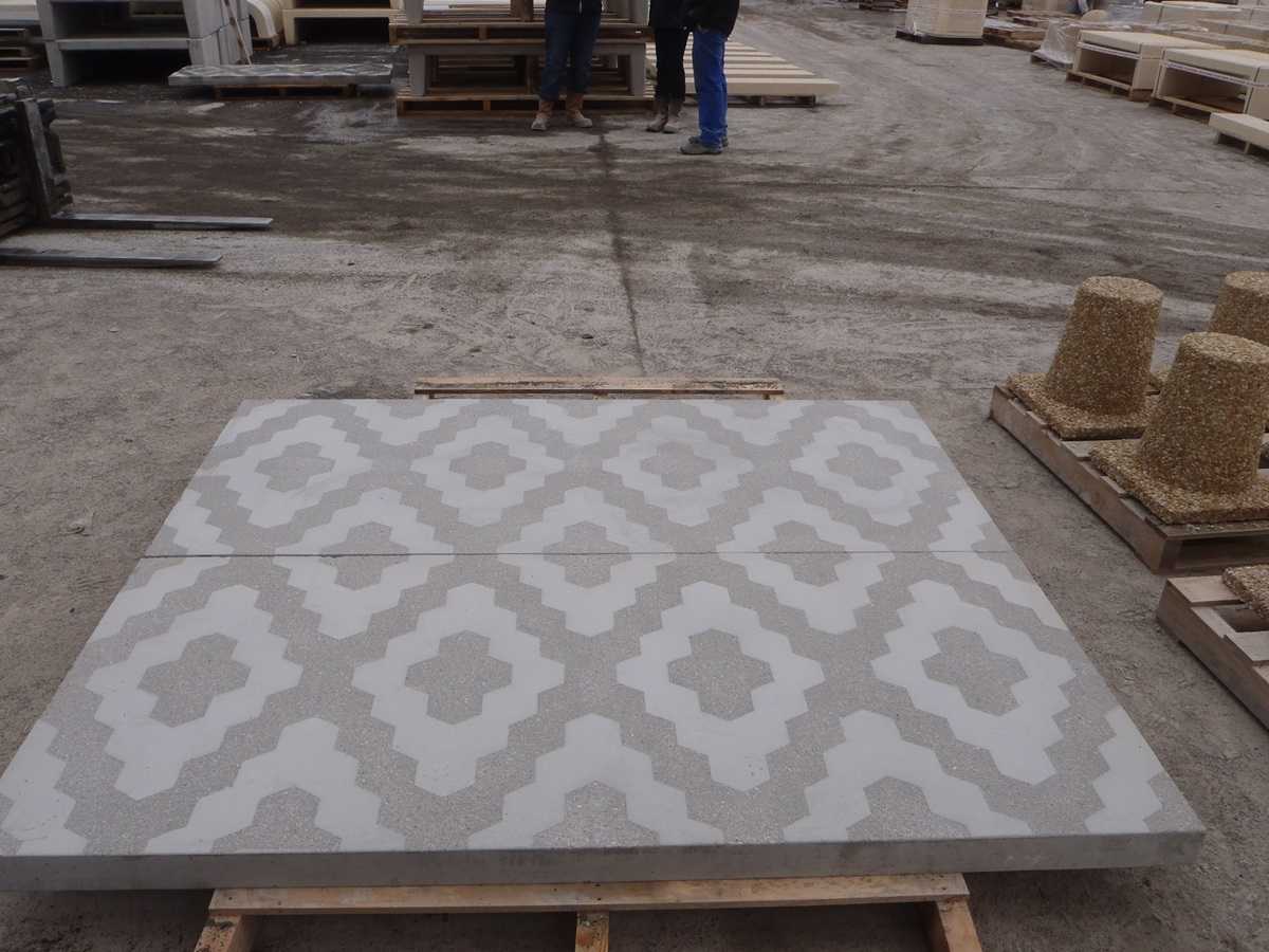 Mr Freddy Charrier – Collectif Letsgrow – souhaitait réaliser des passerelles en dessus de noue avec des dalles bétons ayant un motif spécifique à son projet. Nous avons utilisé un pochoir pour sabler le motif.
