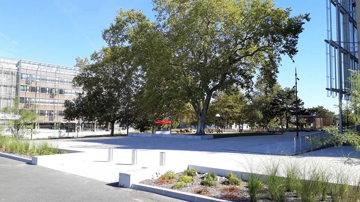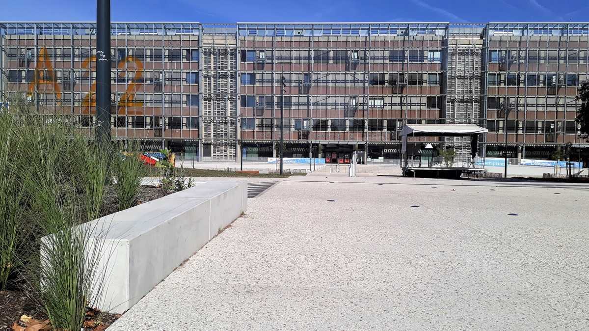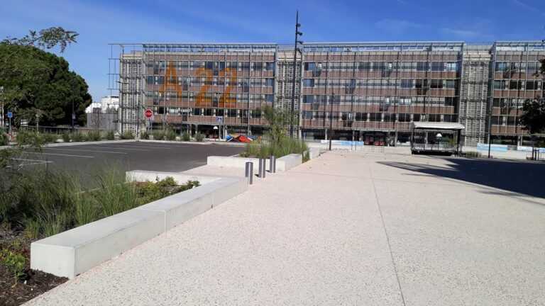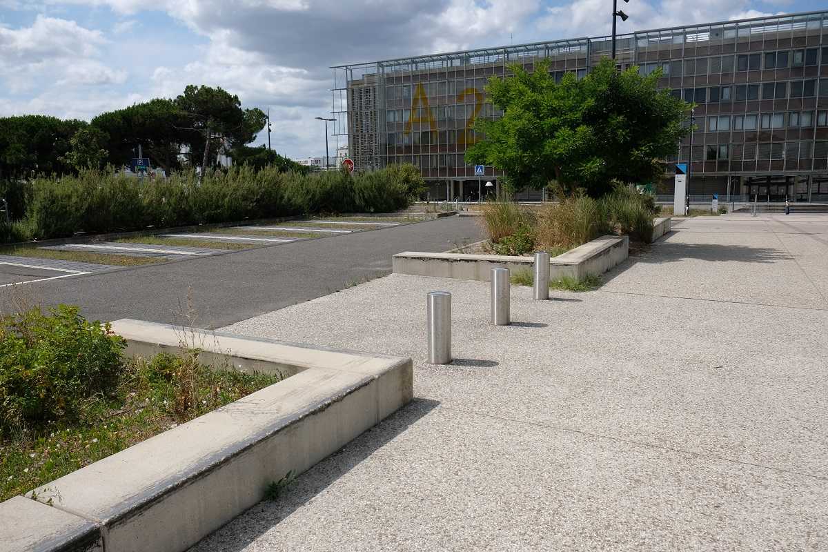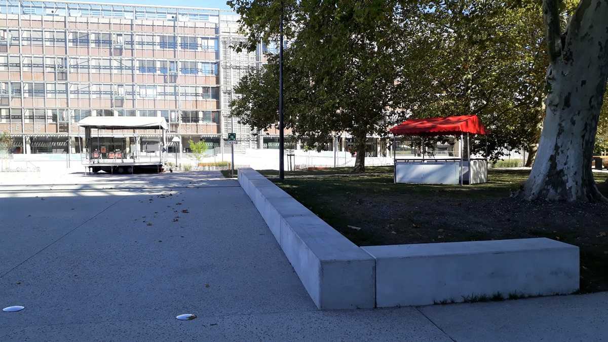 Les banquettes servent aux skateurs en week end et aux étudiants en semaine. Les finitions sablées résistent mieux à l’usage des skates et leur finition rugueuse limite cet usage.