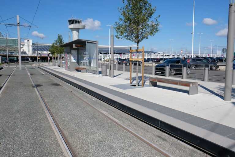 Nez de quai de la station du tram de l’aéroport de Bordeaux, Signes Paysages
