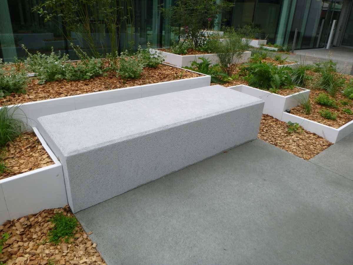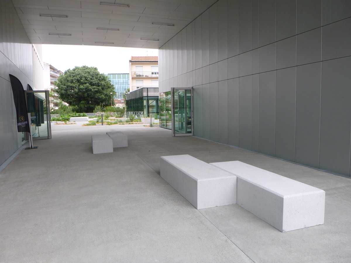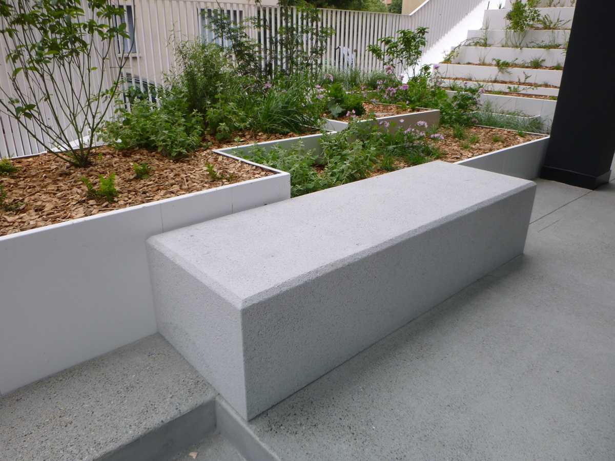Les banquettes sont spécifiques au projet, avec des chanfreins de 20×20 mm